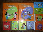 | ★ファンウイズワーズは1999年まではフルセットに含まれていましたが、2000年、フルセットの中からはずされ、副教材となりました。 (パッケージや、表紙のデザインは変わりましたが。)(2006年から絵がブラシタッチアート(絵に影がついた)になりました。) ★カードや絵辞書ポスターは年代によって、付属したり消えたりしていますが、内容は全く同じです。最新版に付いたカード4箱は1999年以前のシングアロングに付属しているものとほとんど同じです。 (カードも2006年から絵がブラシタッチアート(絵に影がついた)になりました。)